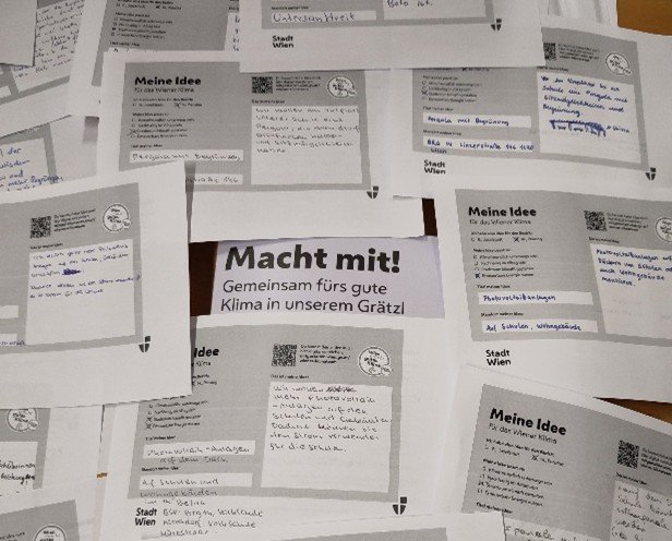 Die Ideensammlung bildete Phase 1 des Klimateams, weitere Phasen beinhalten eine Ideenausstellung (Phase 2), die konkrete Ausarbeitung der Ideen (Phase 3), das Abstimmen über Ideen (Phase 4) und letztendlich die Durchführung der Ideen durch die Stadt Wien (5. und letzte Phase).