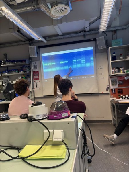 Im zweiten Teil widmeten sich die Schüler:innen ihrem eigenen Erbgut, um herauszufinden, ob sie genetisch eher zu den Lang- oder Kurzschläfer:innen gehören. Entscheidend ist dafür eine kleine Region im sogenannten Clock-Gen, das unsere innere Uhr steuert. Dazu vervielfältigten sie ihre DNA mittels PCR, schnitten sie mit Restriktionsenzymen und analysierten die Fragmente per Gelelektrophorese. Während manche verblüfft auf ihr Ergebnis blickten, nahmen es andere mit einem Schmunzeln: Das morgendliche Aufsteh-Drama hatte also womöglich doch eine genetische Komponente. Wichtig war in der anschließenden Diskussion jedoch eines: Gene können mitreden – doch Lebensstil, Schlafgewohnheiten und Weckerdisziplin haben ebenso großen Einfluss auf unsere nächtliche Erholung.