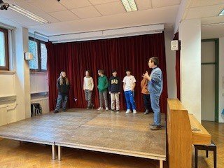Mit viel Begeisterung und Engagement erprobten die Schüler:innen unterschiedliche Theaterübungen. Besonders das tonlose Sprechen und Tratschen sorgte für große Freude. So wird diese Übung künftig auch im Unterricht öfter zum Einsatz kommen.
