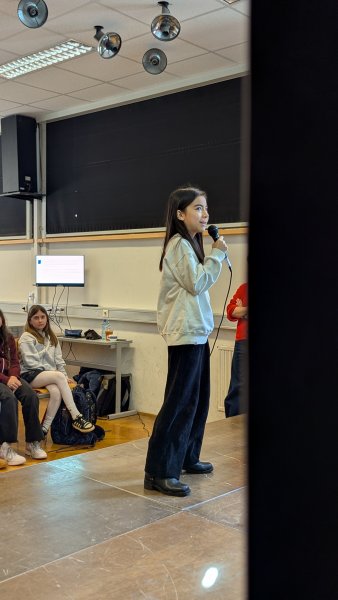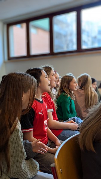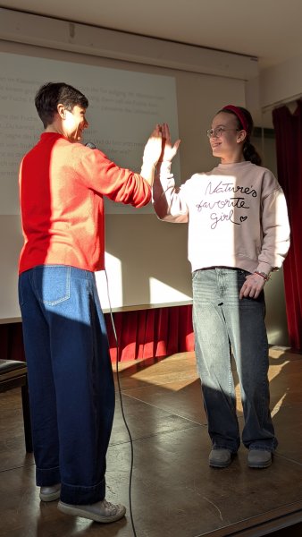 Um für den Vorlesewettbewerb gewappnet zu sein, findet seit jeher für die 1. Klassen ein Workshop mit Autorin Lena Raubaum statt – heuer genau am 23. Februar. Mit Best Practice Beispielen, viel Humor, Sorgfalt und sprachlichen Künsten animiert Lena Raubaum die Schüler:innen zum Vorlesen. Am Ende verlassen die Jugendlichen den Raum mit einer Hand voll Tipps und wissen um die beste Vorbereitung für den Vorlesewettbewerb Bescheid.